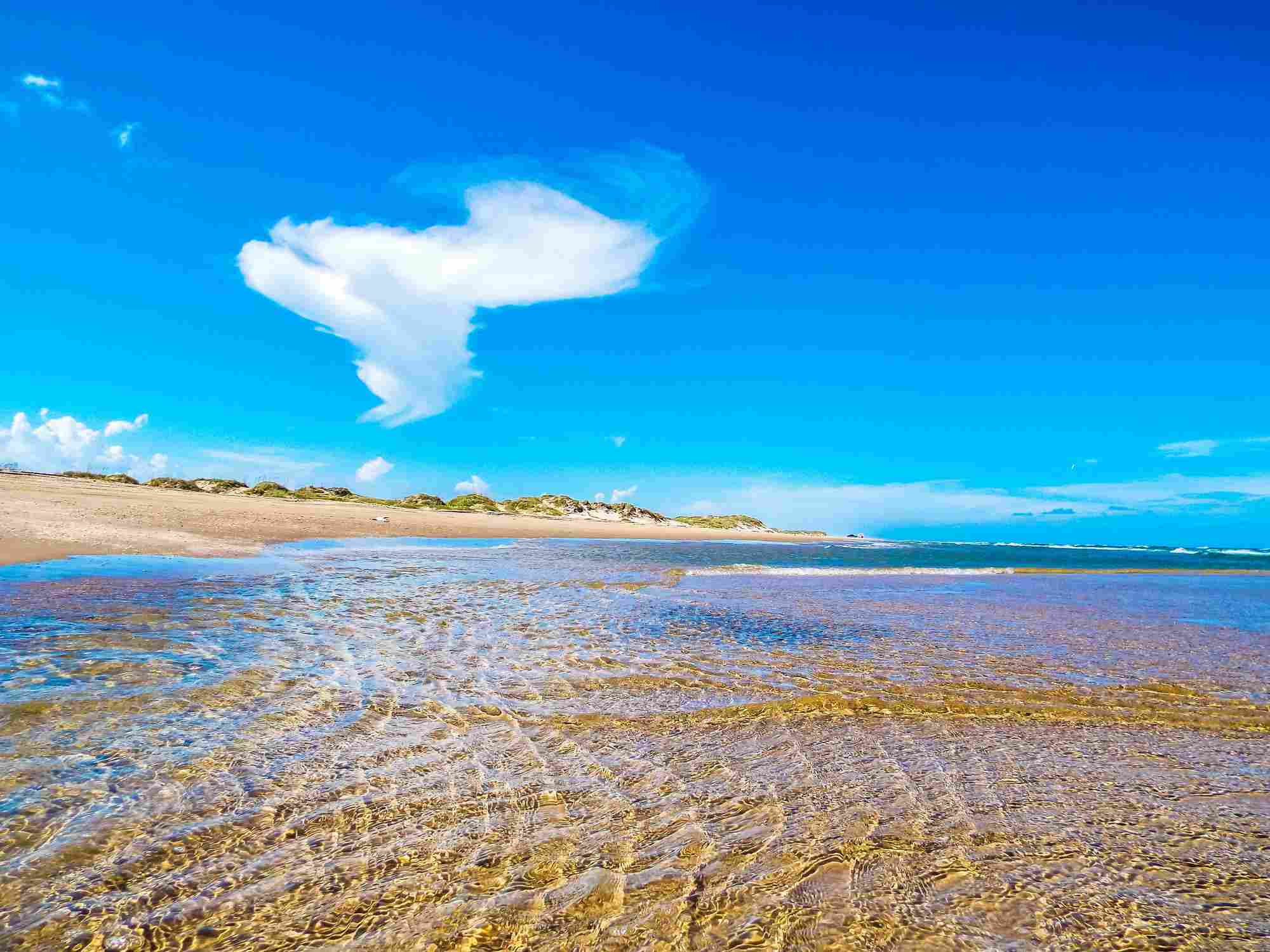 Walking in the shallow coastal waters, you can feel the rows of bumps in the sand from the rippling wave action of the ocean.