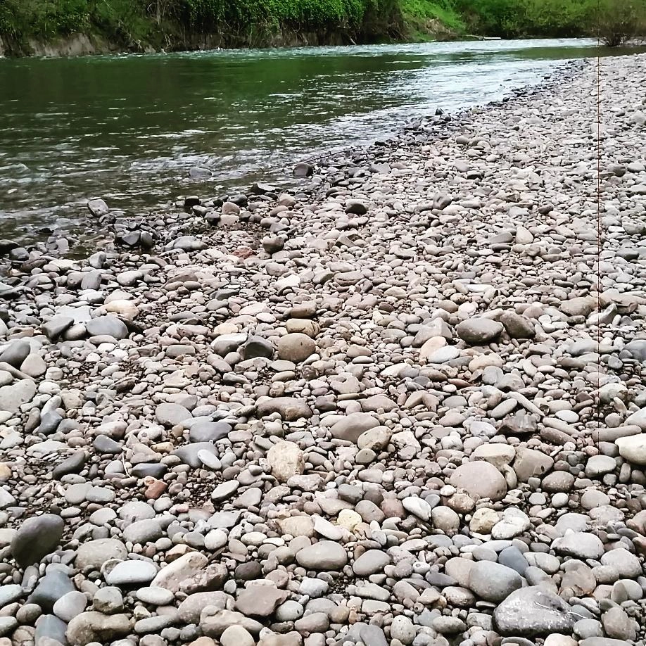 It is fun to wade in the shallow areas of the river; the smooth rocks are rounded and sometimes slippery.