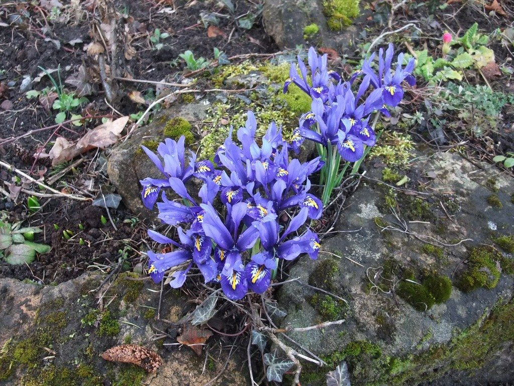 The area is mostly underlain by sedimentary rocks, but there are a few small volcanic cinder cones and some ancient buried volcanic lava flows. The soil that developed over these volcanic rocks is richer in potassium. You can identify these areas because the wild iris plants like the potassium-rich soil and only grow in that area.