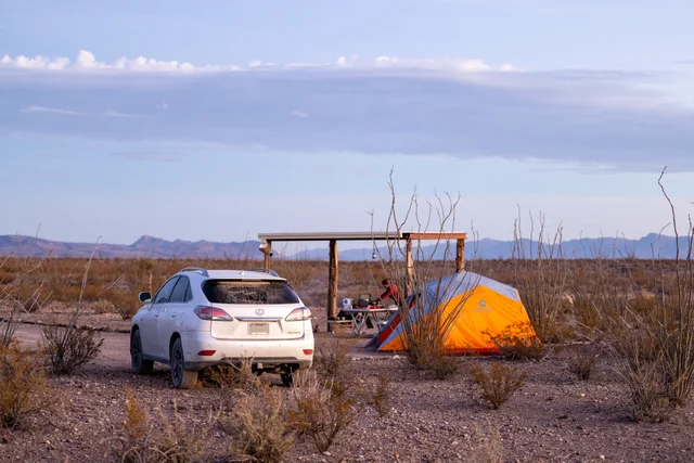 When camping in west Texas, we wake one morning to discover that our car and tent are covered with a thin layer of sand.