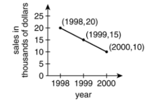 The graph below models a constant decrease in annual Licorice sales for Licorice Company Inc. from 1998-2000. The points have been connected to illustrate the trend. Which of the following values is closest to the amount, in dollars, of the decrease per year?