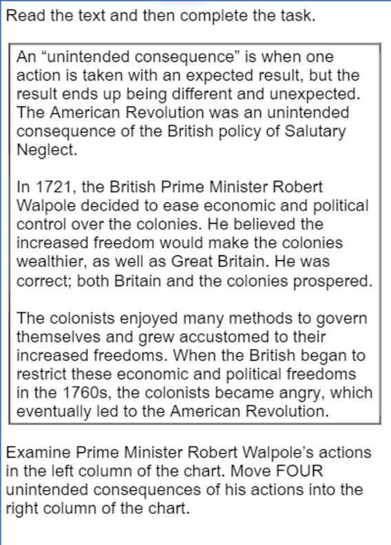 Match Walpole's Actions to the unintended consequences