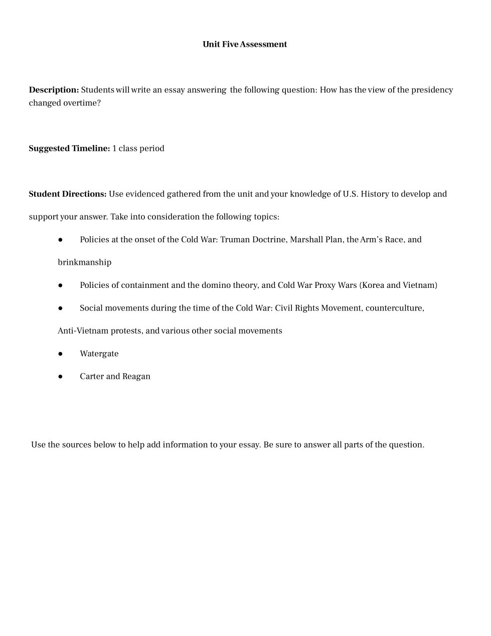 Create an outline for the essay question and use the above sources to enhance your answer. Your essay should contain and introduction paragraph, 3 separate body paragraphs and a conclusion.