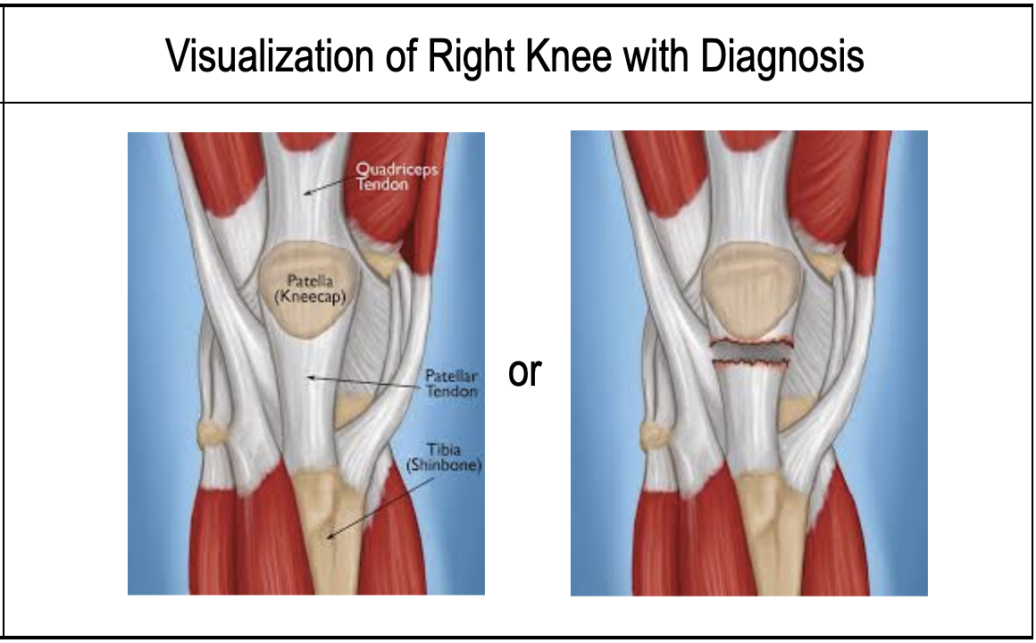 In your response, be sure to include specific evidence from your sonogram results compared to the anatomical diagram below and explain how the sonogram shows the injury or health of each knee.