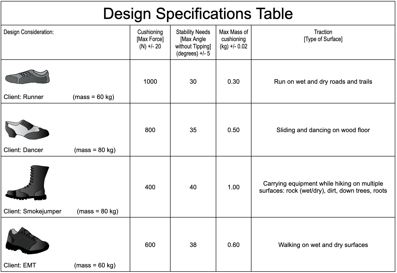 You and your friends are being entrepreneurial and trying to break into the vibrant shoe culture in the Northwest. Your company is an emerging competitor to local shoe companies and your are trying to get a bigger foothold into the market. After hiring a market research team, the market research report revealed that while it is hard to break into the market in popular shoe types (basketball, cross-trainer, etc.) there are several untapped profitable markets. These markets include: minimalist running shoe, dance shoe, extreme hiking shoes (for smoke jumpers), and medical professional shoes (for emergency medical technicians, EMTs). Your goal is to create a design mockup for your chosen shoe that details your design with justification of your design decisions.