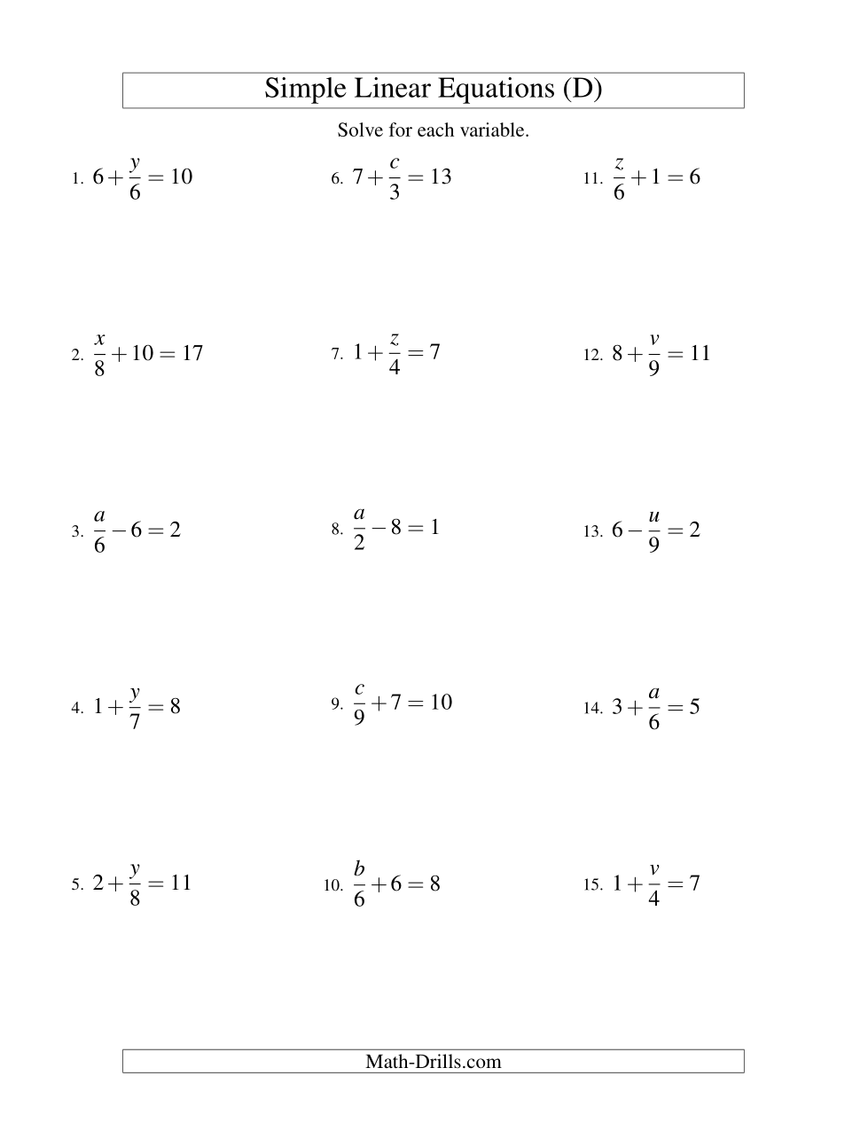 6.3 #3 - Solving Equations Involving Fractions Worksheet