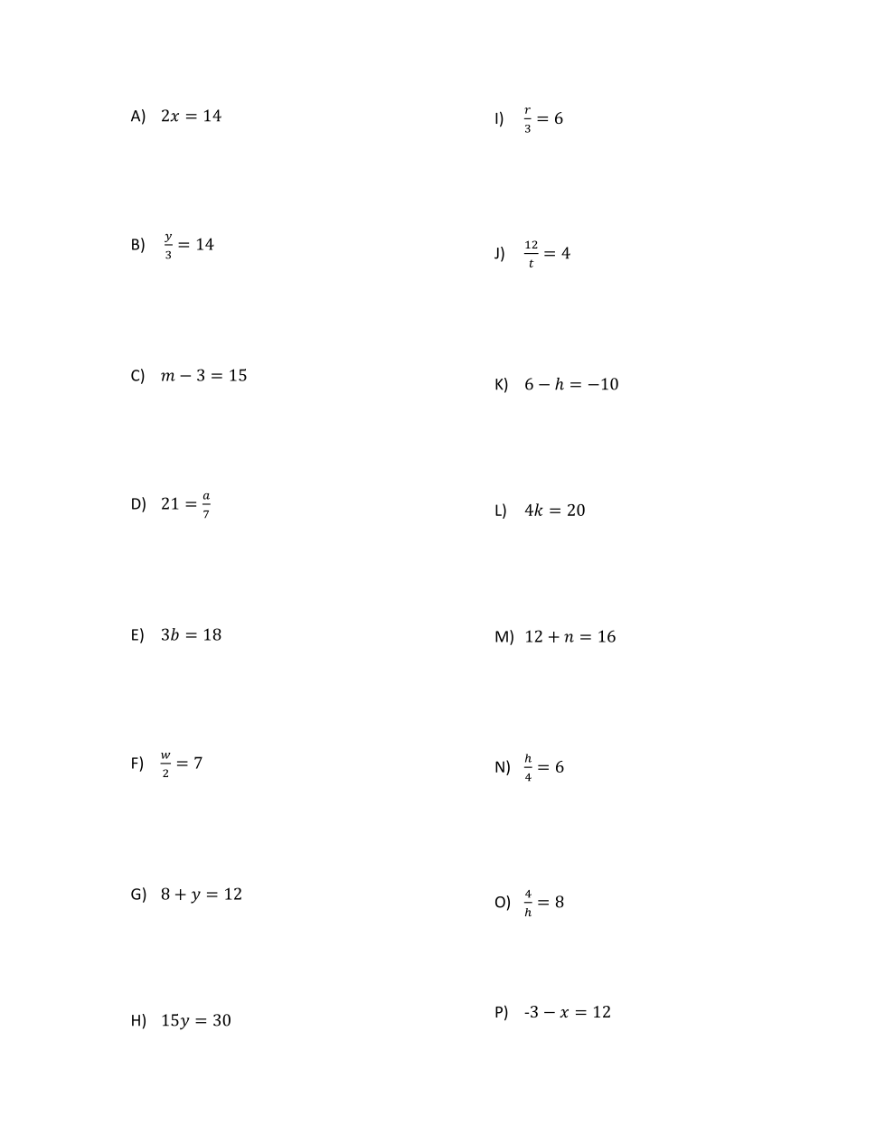 6.3 #1 - Solving Equations Involving Fractions Worksheet