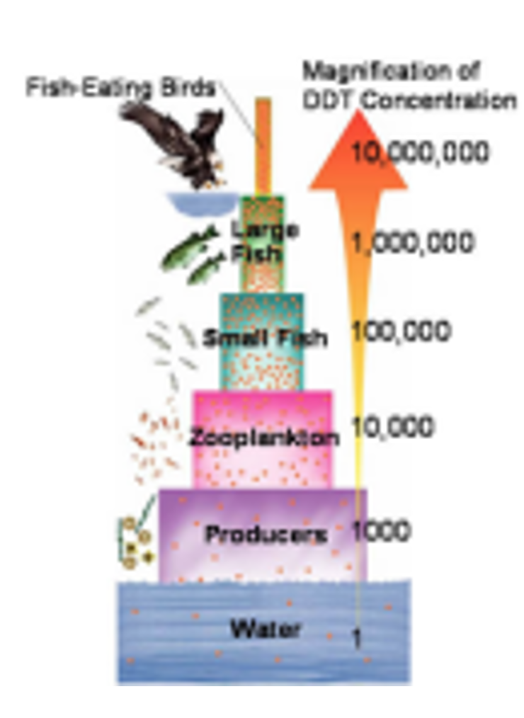DDT was a pesticide that was heavily used until its harmful health effects were fully discovered. Fish are a food group consumed in many households around the world. How is the biomagnification of DDT a concern in relation to individual health?