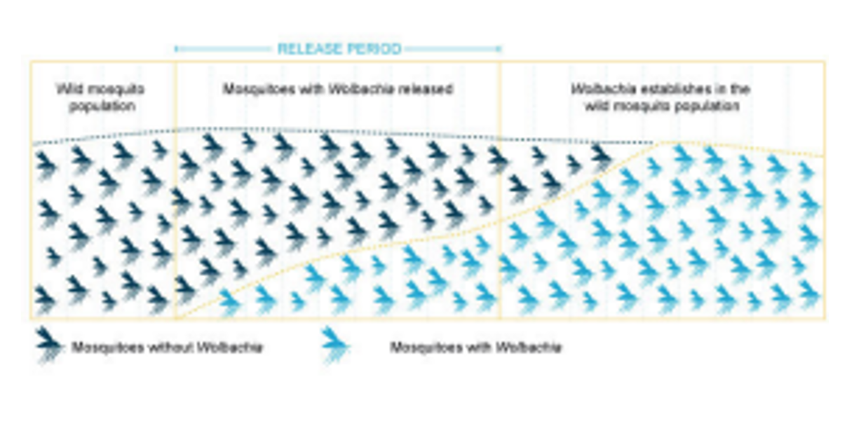 Mosquitos are the greatest killers of humans of all time. They kill by passing diseases on to humans. One idea scientists are testing is infecting mosquitoes with a naturally occuring bacteria called wolbachia. This bacteria spreads quickly through a population and once the mosquito is infected the bacteria out-competes the virus or parasite that the mosquito would pass to a human. Wolbachia have no impact on human health. What impact could wolbachia have on human populations over time?