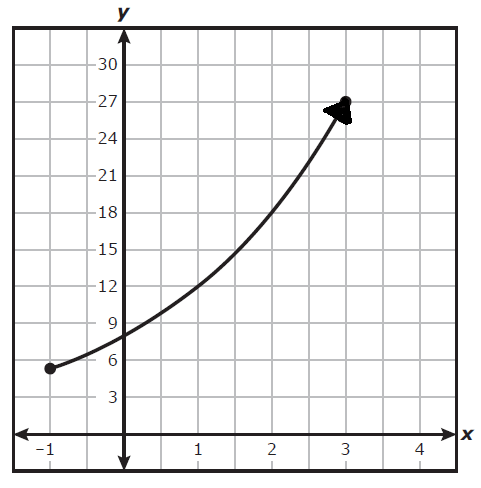 Part of an exponential function is shown on the graph below. What is the domain of the part shown?