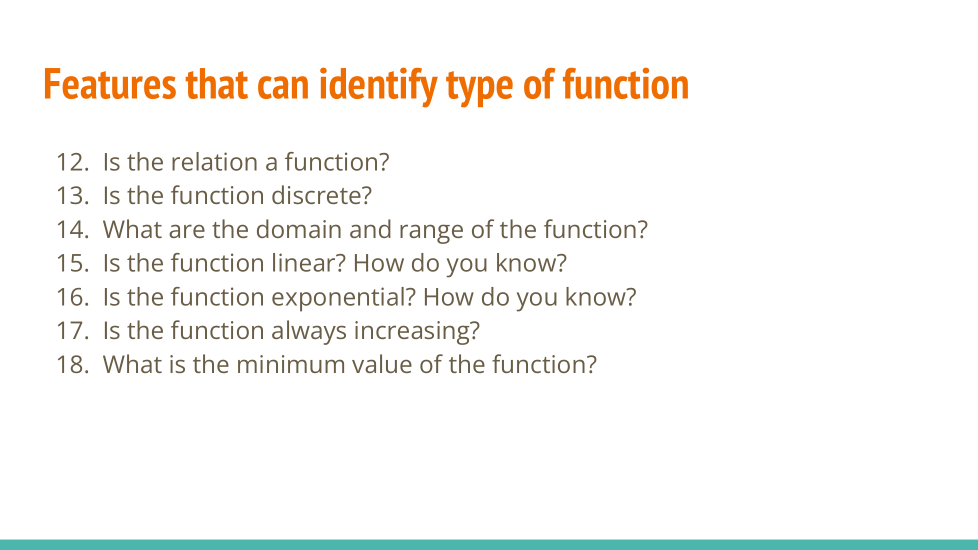 I can accurately interpret key features given a situation, graph or function.