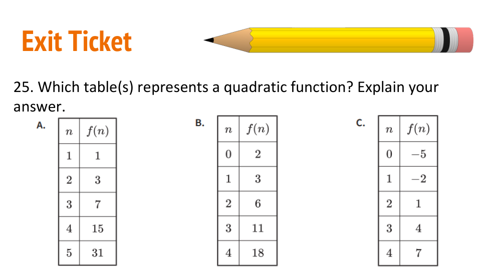 ¿Qué tabla(s) representa una función cuadrática? Explica tu respuesta.
