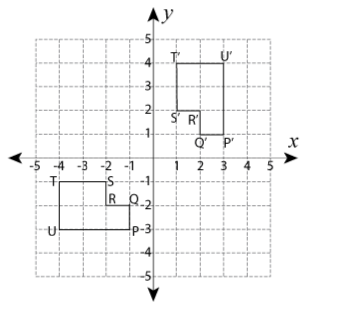 A figure undergoes a sequence of two transformations starting from figure PQRSTU to figure P'Q'R'S'T'U'. Determine the order of the transformations.