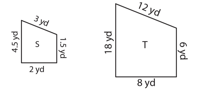 True or False: The two figures are similar because corresponding side lengths are congruent, and corresponding angles are proportional.