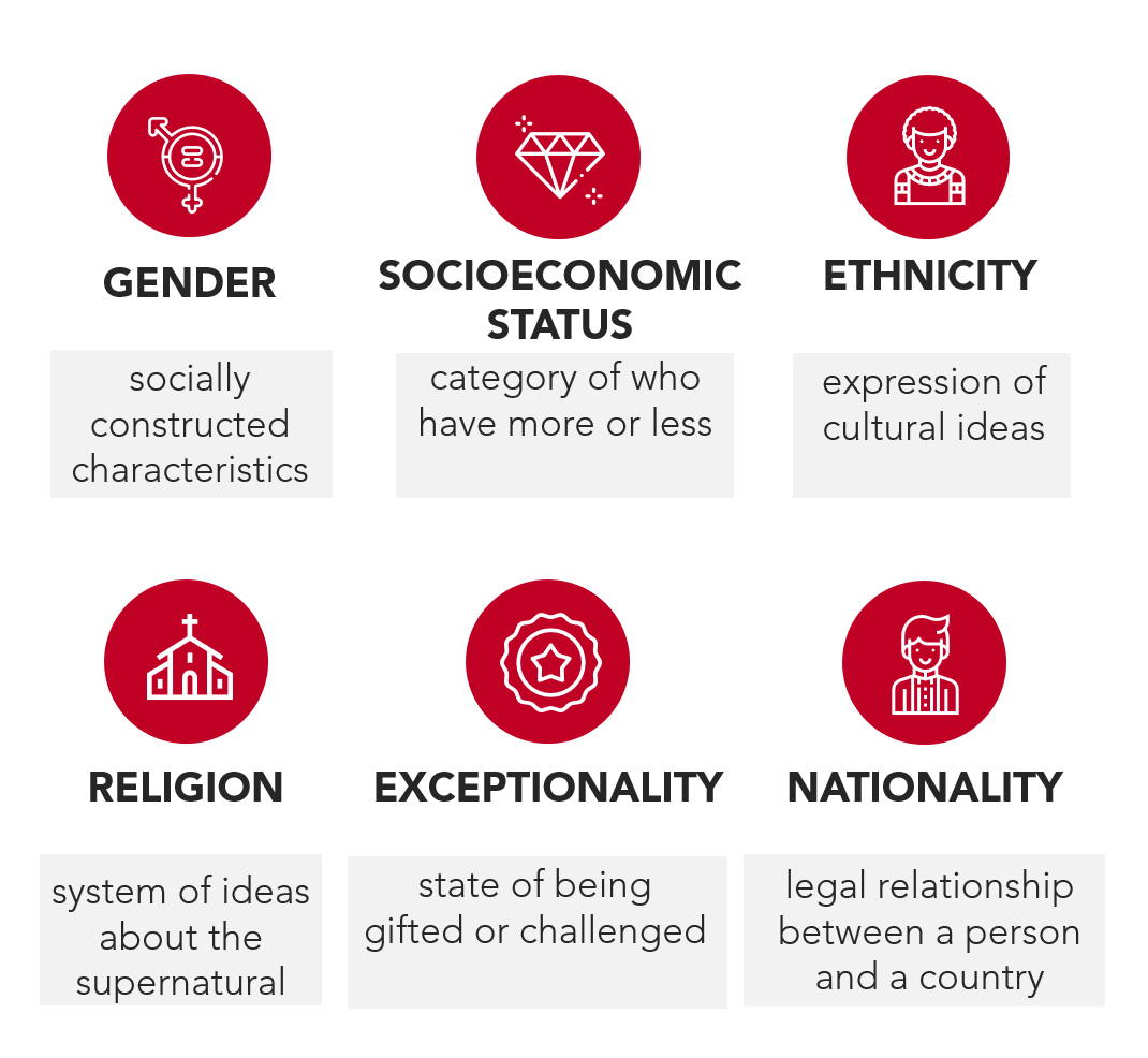 These differences include those associated with gender, sexual orientation, age, social class, religion, and ability.