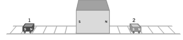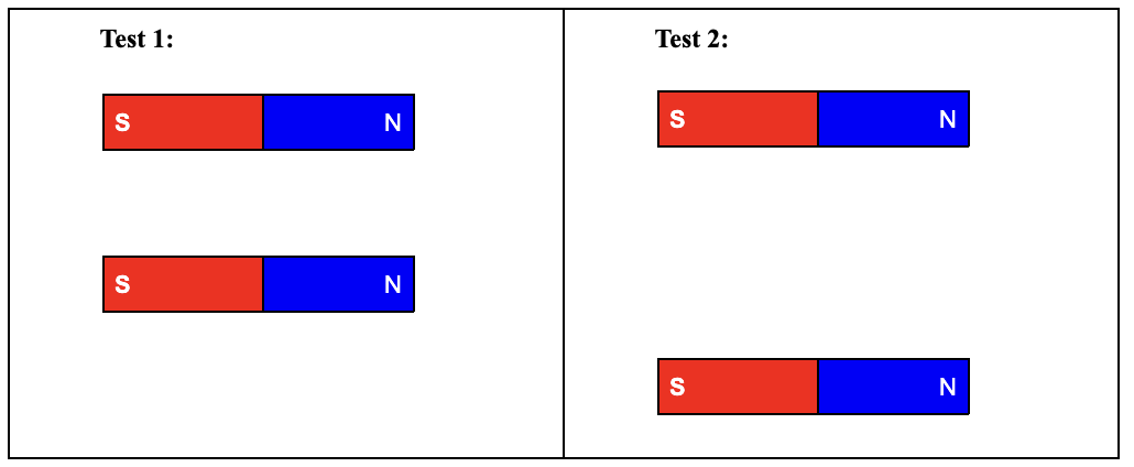A group of engineers is working on a new light train that will use magnetic levitation to run. While developing plans the engineers were trying to determine the best positions for the magnets where they will experience the most potential energy when held in place and most kinetic energy when the magnets are released. The engineers run the following two tests.