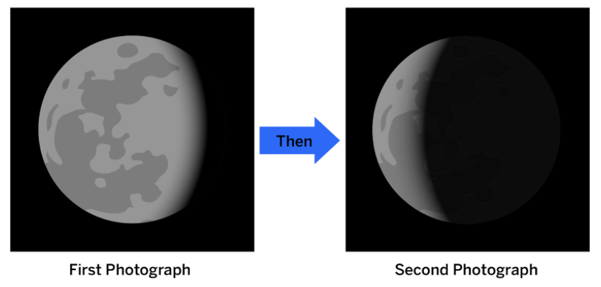 An artist took two photographs of the Moon that were several days apart. Images that look like his photographs are shown above.