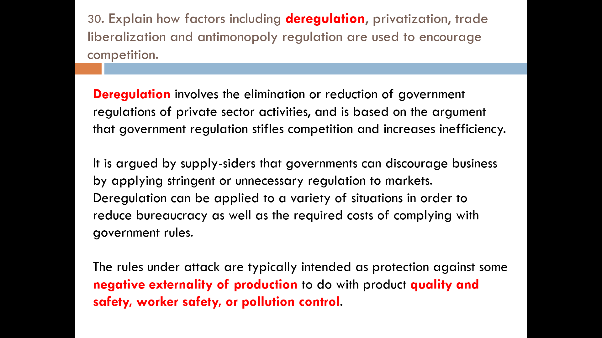 Explain how weakening EPA's (Environmental Protention Agency) regulations could be seen as supply-side policy.