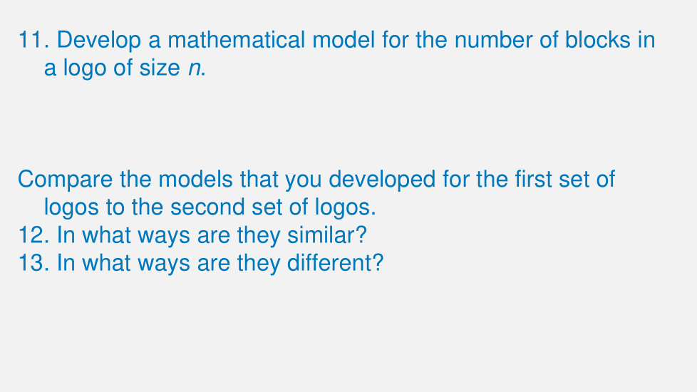 Desarrolle un modelo matemático para el número de bloques en un logotipo de tamaño n.