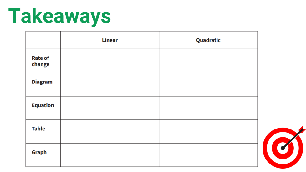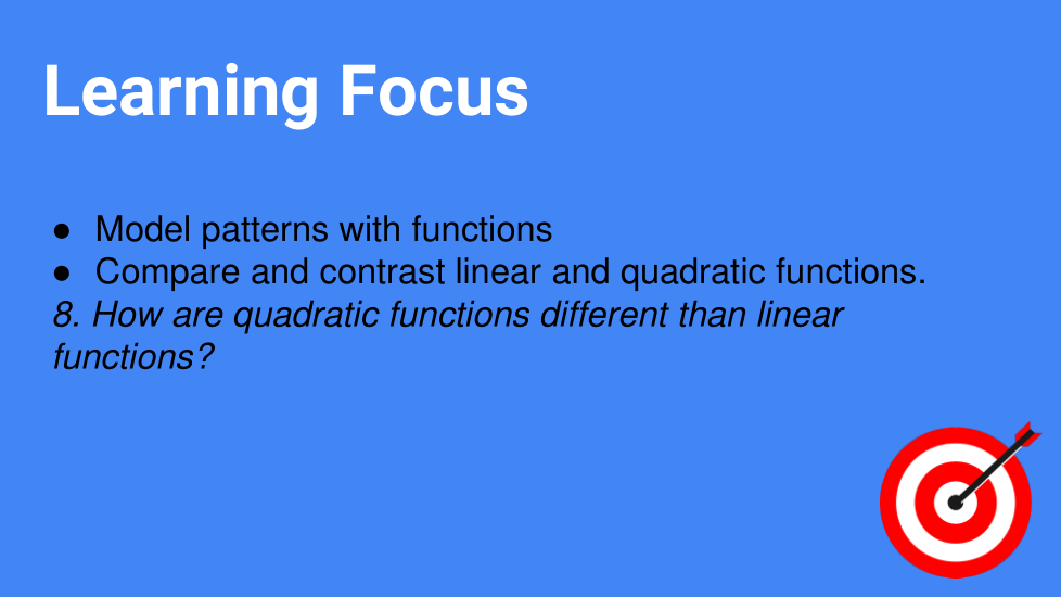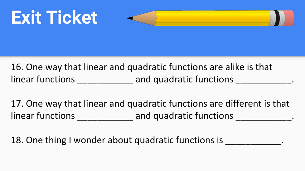 Una forma en que las funciones lineales y cuadráticas son diferentes es que las funciones lineales ___________ y las funciones cuadráticas __________.