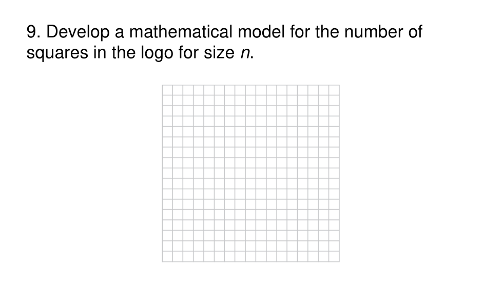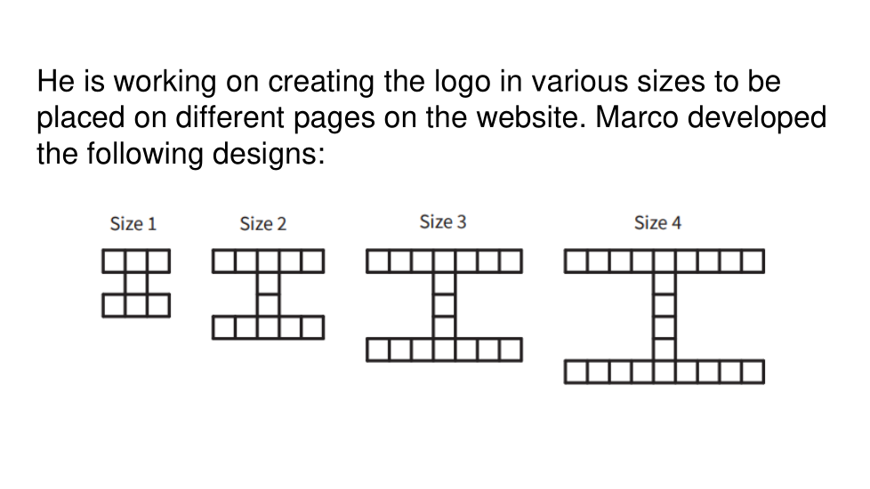 Tengeneza modeli ya hisabati kwa idadi ya miraba kwenye nembo kwa saizi n.