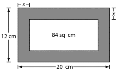 Foto--Martin put a picture in a rectangular frame measuring 20 cm by 12 cm. The area enclosed by the frame is 84 square centimeters.