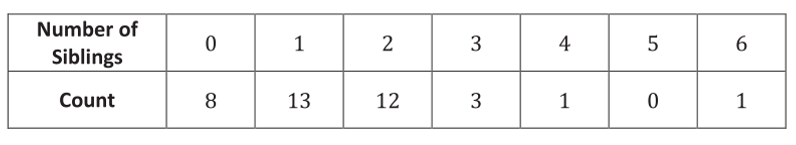 Sibling Statistics--Each student in a class of 38 students was asked to report how many siblings (brothers/sisters) they have. The data are summarized in the table below.