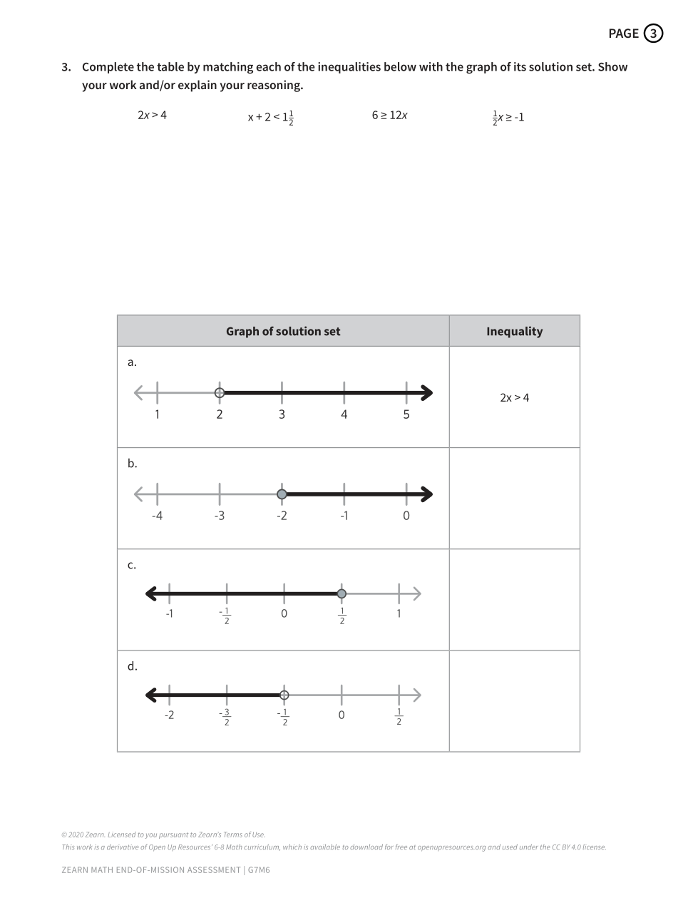3. Complete the table by matching each of the inequalities below with the graph of its solution set.