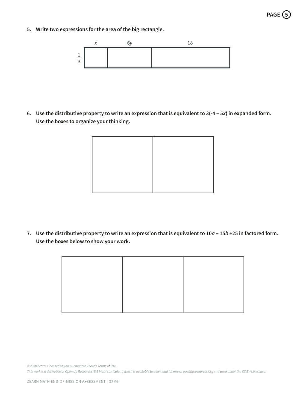 6. Use the distributive property to write an expression that is equivalent to 3(-4 - 5x) in expanded form.