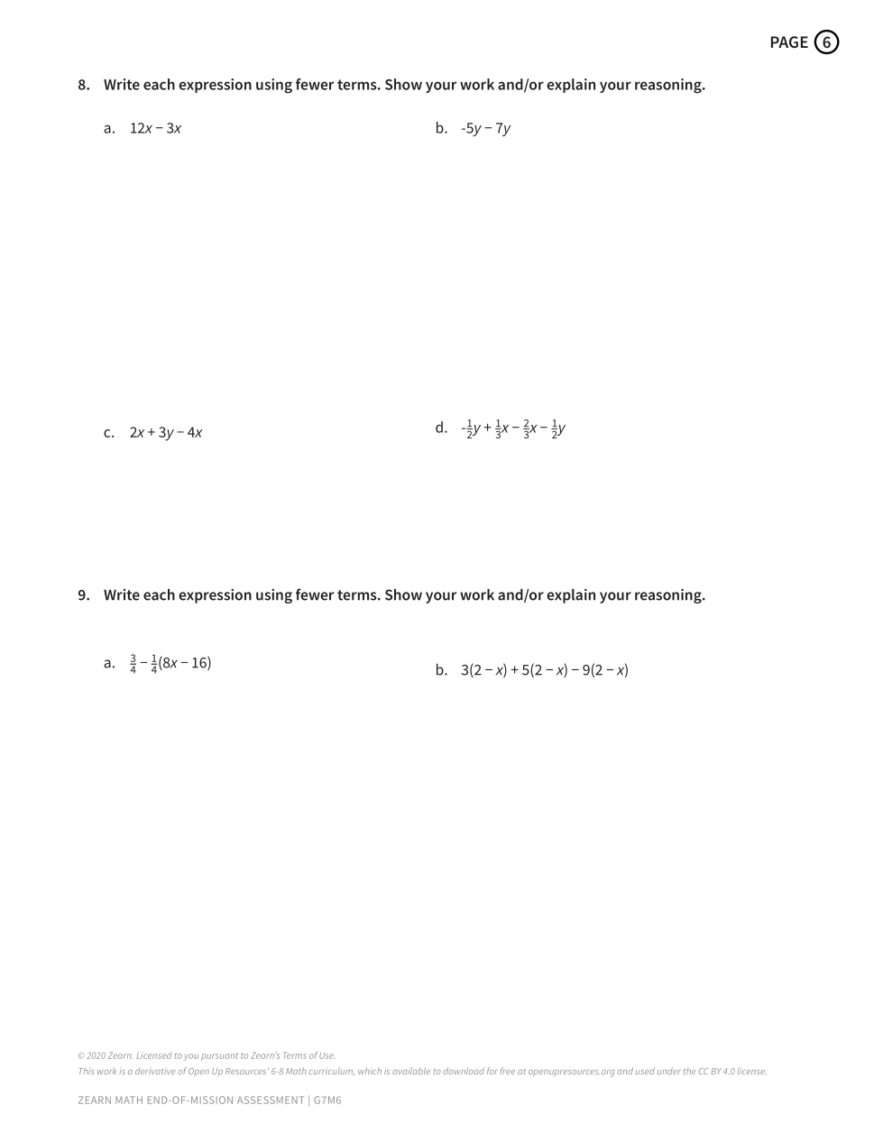 8. Write each expression using fewer terms. Show your work and/or explain your reasoning.
