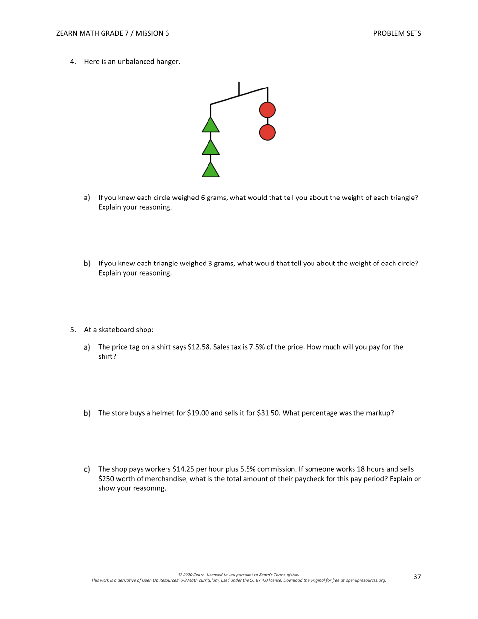 a) If you knew each circle weighed 6 grams, what would that let tell you about the weight of each triangle?