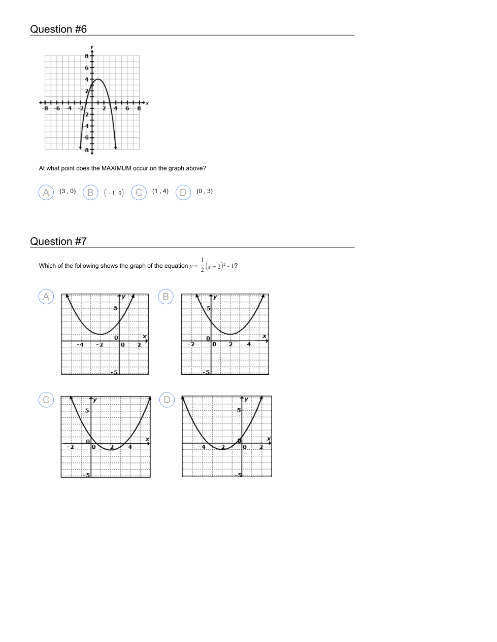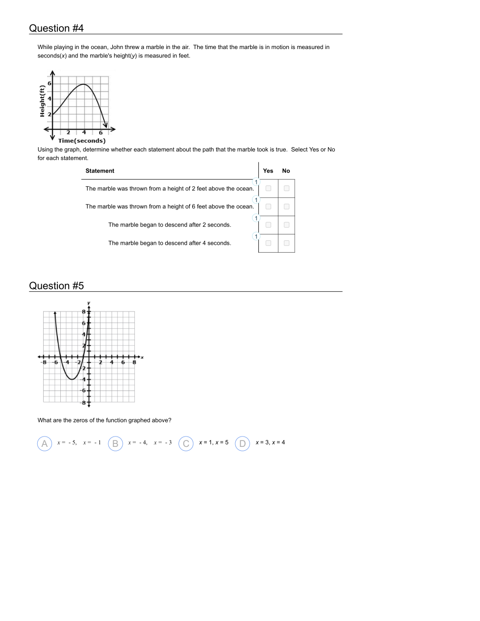 What are the zeros of the function? Remember that the following all mean the same thing: zeros, x - intercepts, solutions, and roots.