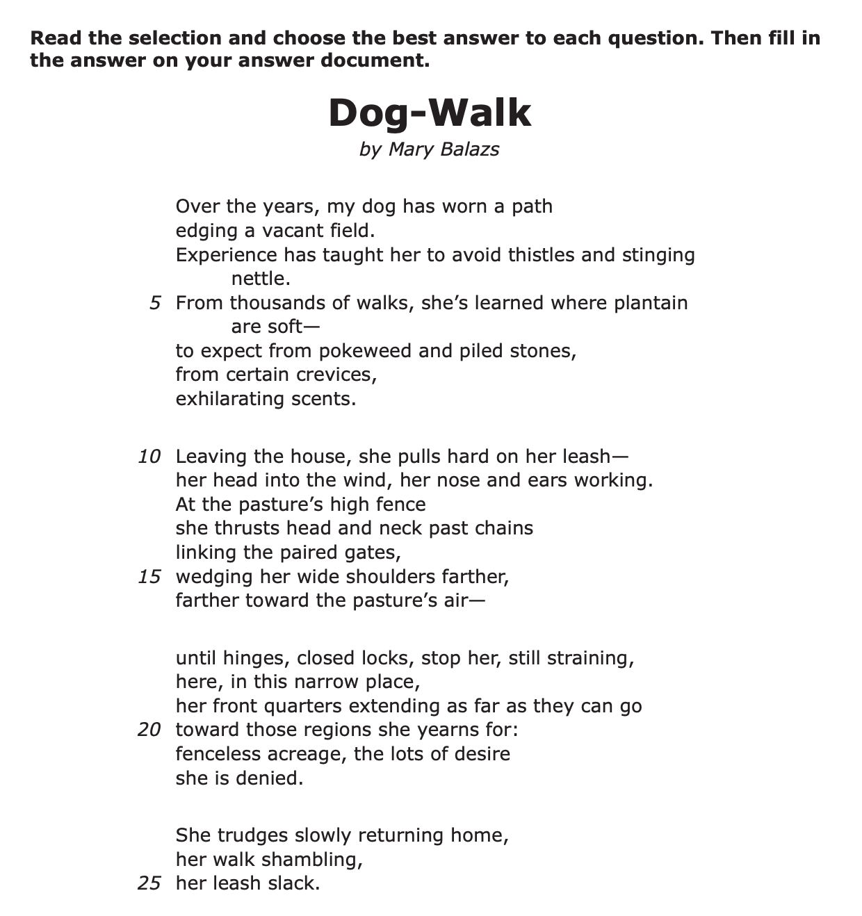 In contrast to line 10, the last line of the poem shows that the dog now feels --