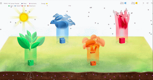 In the Simulation gif below, observe the energy flow between organisms in the Simulation and focus on the decomposers.