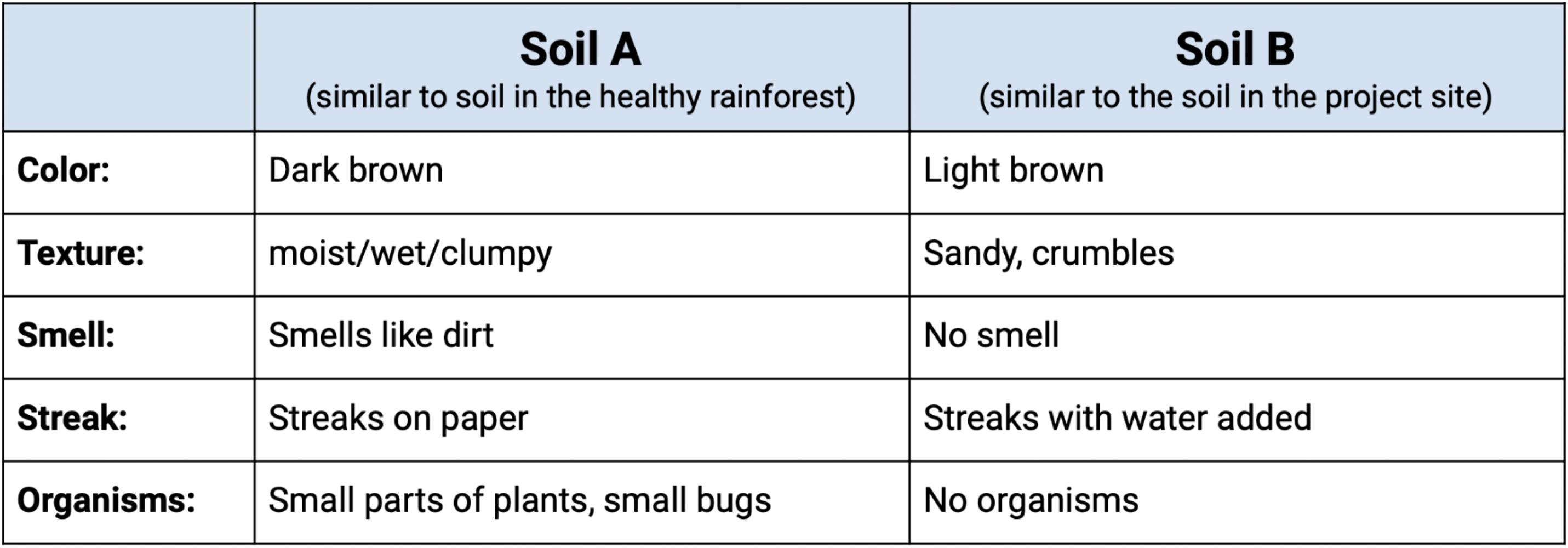 Sentence starter: Soil can be different in parts of the rain forest because _____________________