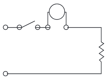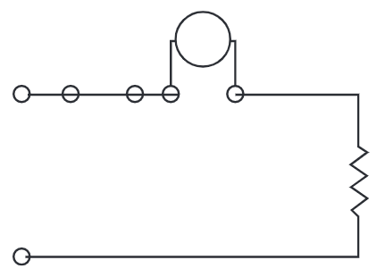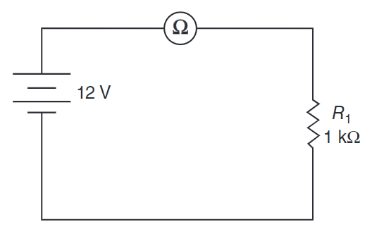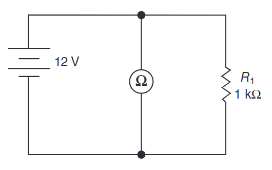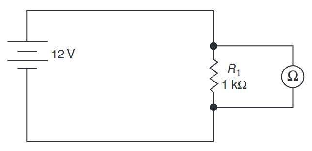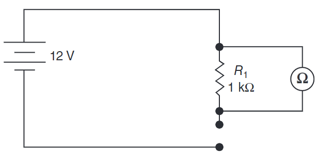 Select the schematic that shows the correct way to connect an ohmmeter when taking a measurement.