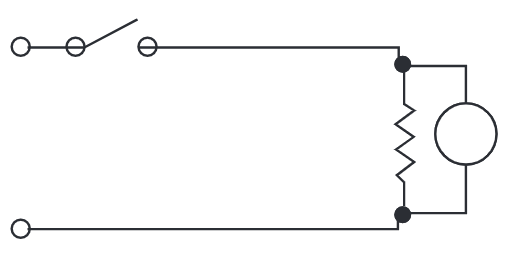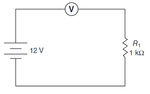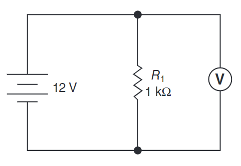 Select the schematic that shows the correct way to connect a voltmeter when taking a measurement.