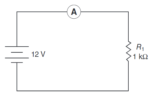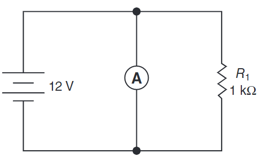 Select the schematic that shows the correct way to connect an ammeter when taking a measurement.
