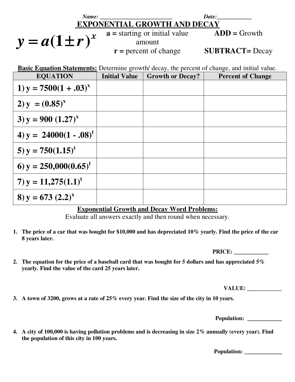 Assignment 1: Exponential Growth and Decay