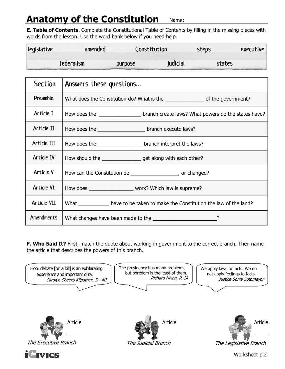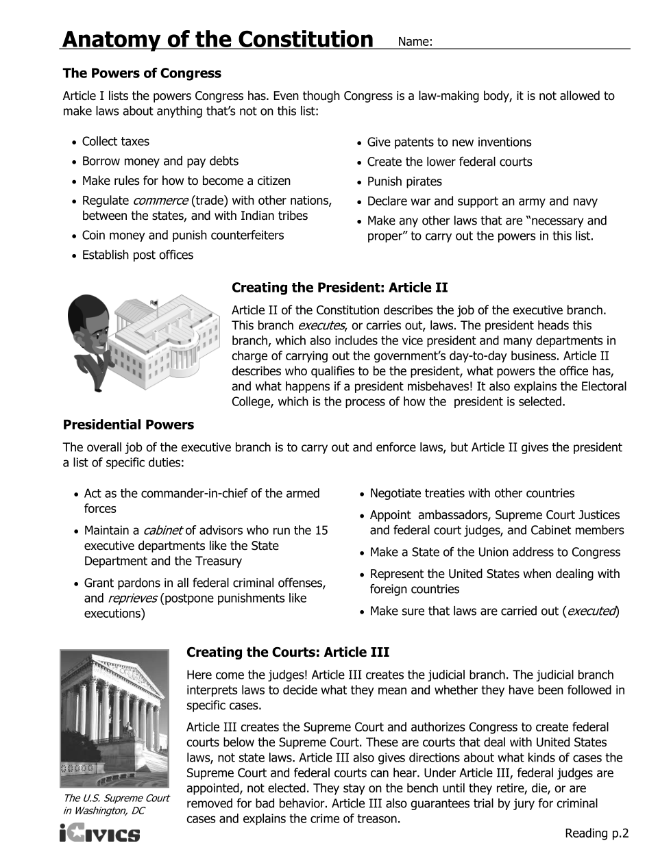 Articles 1-3 | arrow_right_alt | Creates the three branches of the U.S. Government |