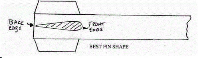 The fins and any other object attached to the rocket will create drag. Although fins create some drag they are needed in order to make the rocket fly straight and stable. Fins, like the nose cone should not have a sharp front edge. Fins work best at subsonic speeds if the nose is slightly rounded and the trailing back edge is sharp.