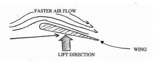 Look at the diagram above. When the wing (fin) is angled as shown the air flows faster over the top of the wing. This creates lift and pushes the wing up