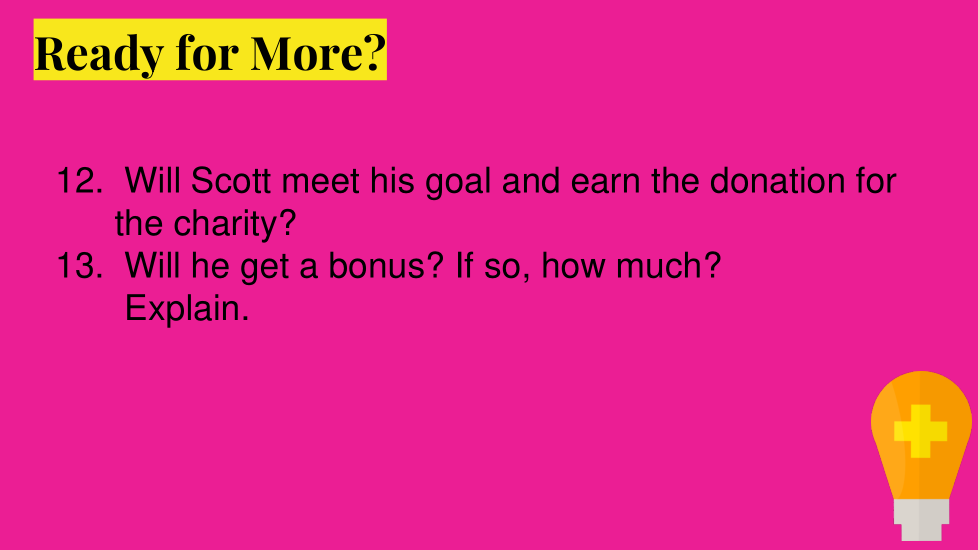 Kwerekana umubare wo gusunika Scott azarangiza kumunsi uwariwo wose. Shyiramo ibigereranyo bisobanutse kandi bisubiramo.