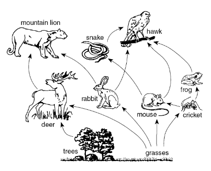 If the population of rabbits is reduced by disease, which change will most likely occur in the food web below?
