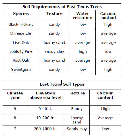 Refer to the tables provided. Which plants depend on and may compete for sandy soil in zone 9?