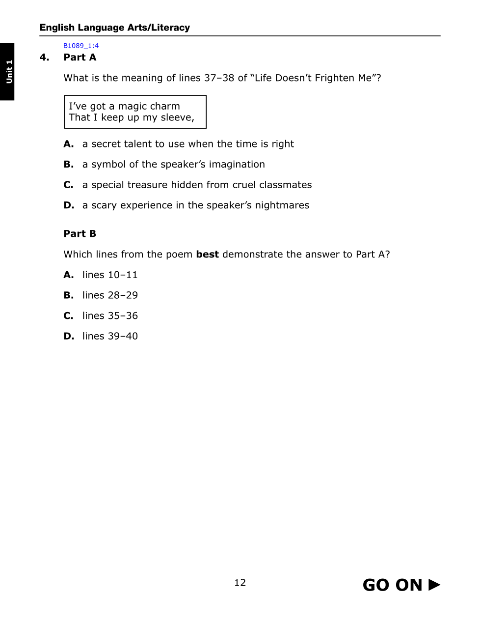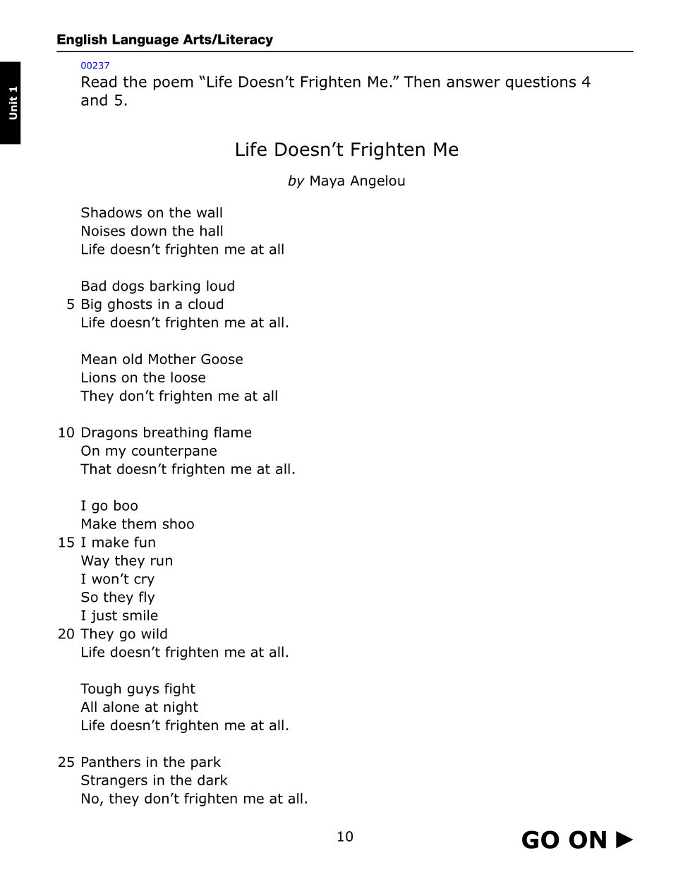 Part A: What is the meaning of lines 37-38 of "Life Doesn't Frighten Me"?