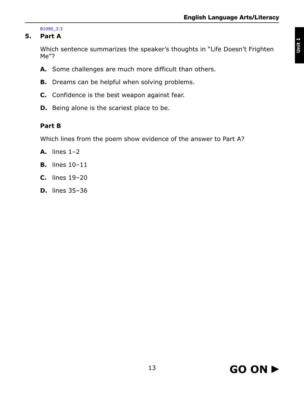 Part A: Which sentence summarizes the speaker's thoughts in "Life Doesn't Frighten Me"?