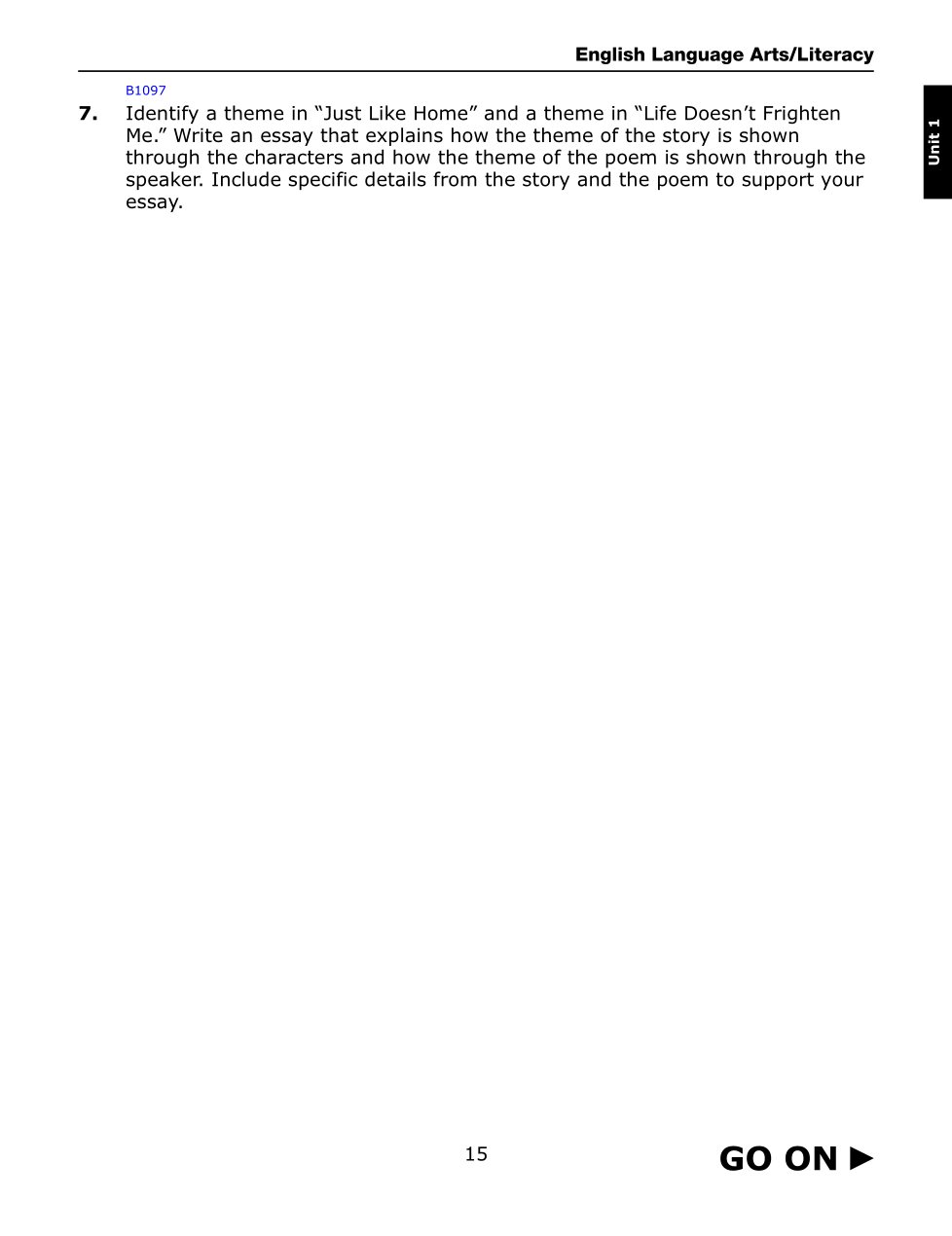 Identify a theme in "Just Like Home" and a theme in "Life Doesn't Frighten Me." Write an essay that explains how the theme of a story is shown through the characters and how the theme of the poem is shown through the speaker. Include specific details from the story and the poem to support your essay.