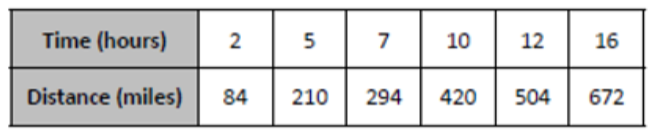 The table shows the linear relationship between the total number of miles driven on a road trip and the number of hours spent driving.