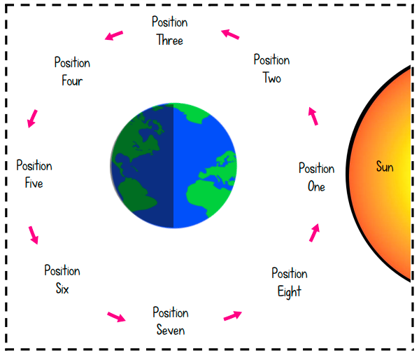 Review moon phases, seasons, and revoltuion.